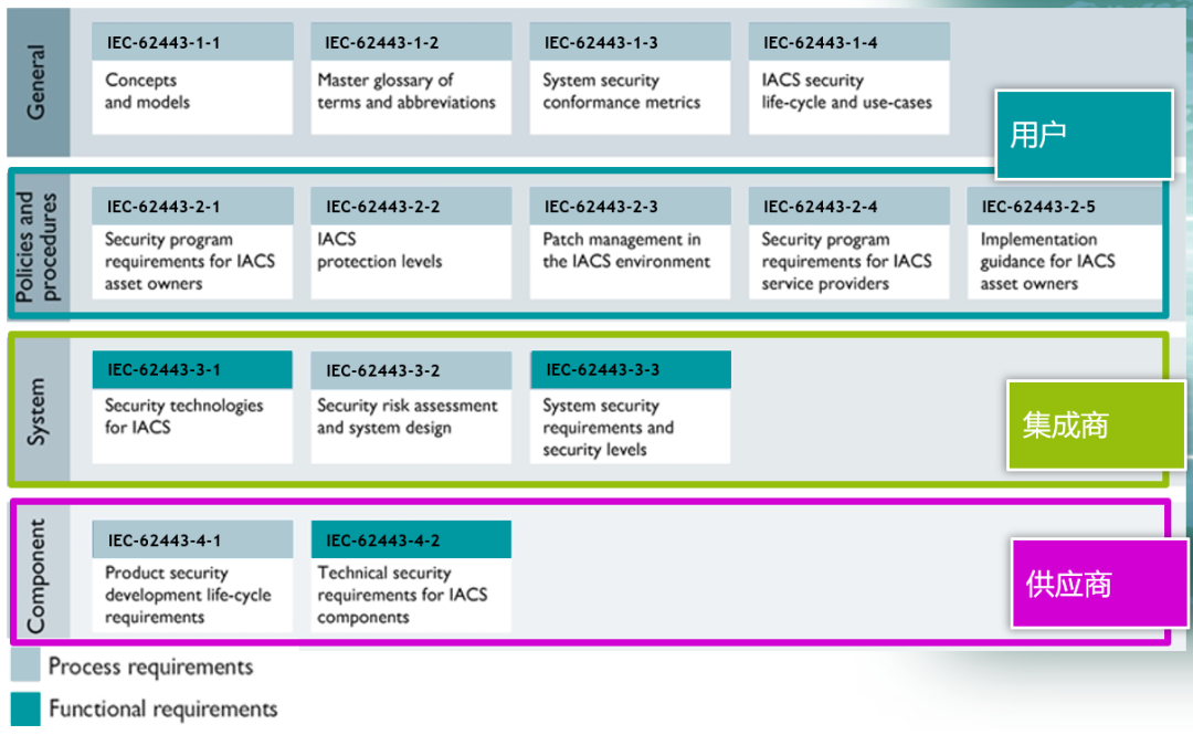 综上所述, IEC 62443标准涵盖了从供应商、系统集成商到用户关于工控信息安全的要求,以实现全方位的保护。