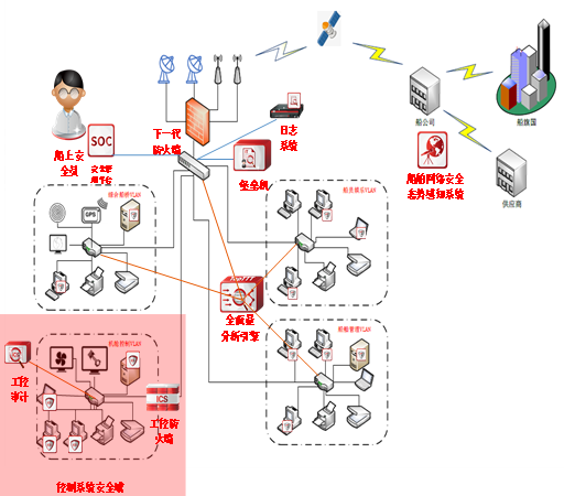 - 岸基驻场:基于船队网络安全态势感知系统,构建一线值守和二线专家支持的两级运维体系